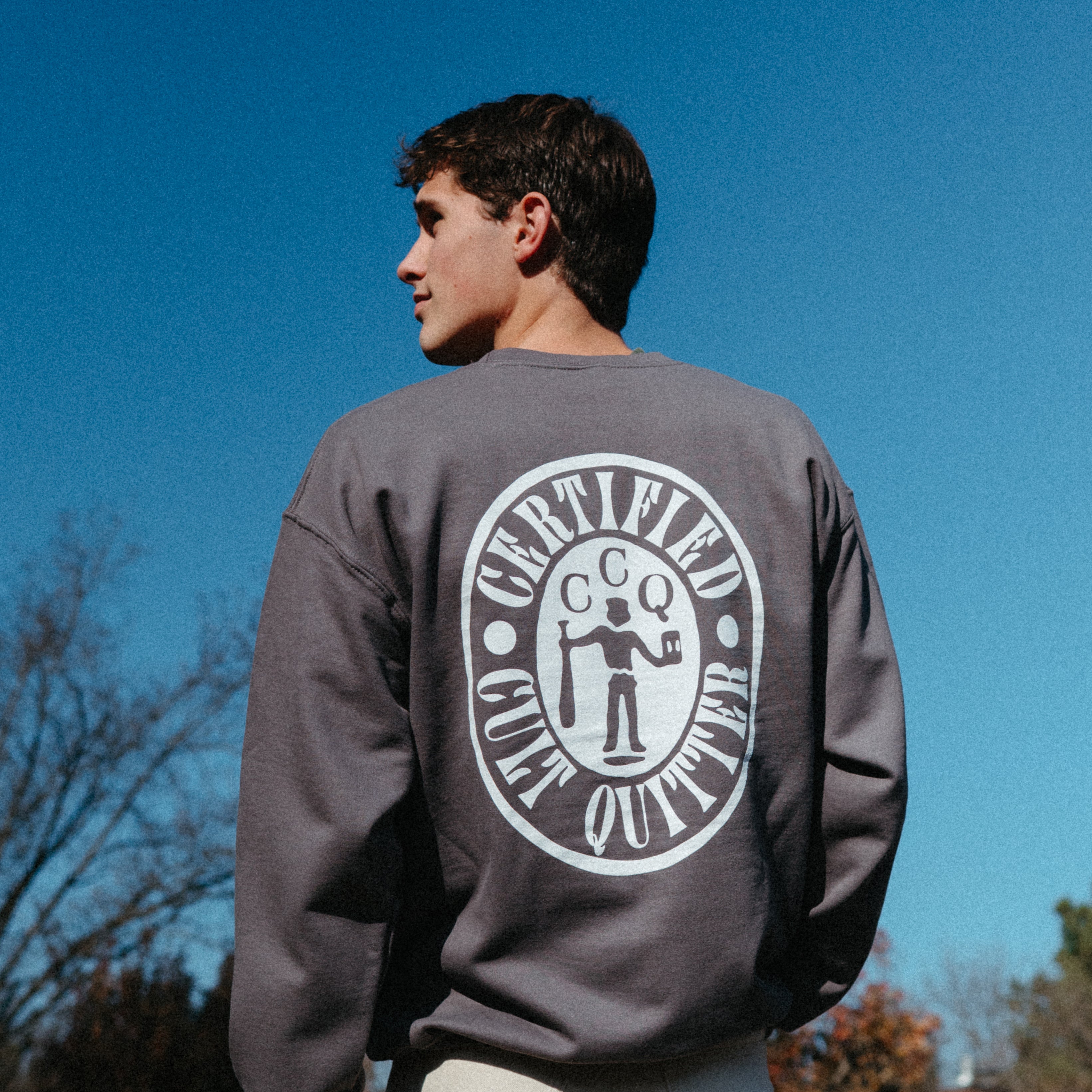 Straight from the meandering and romantic world of Andy Squyres' new ep Sacred Vows, this fabulous charcoal grey Gildan Heavy Blend Crewneck Sweatshirt is ready to keep you warm through the winter while letting the world know that you're officially a cult quitter! Designed by the impeccable team at Fallow.work this sweatshirt has an emblem of Andy Squyres' name on the front left breast and the Certified Cult Quitter graphic on the back, all in white lettering.